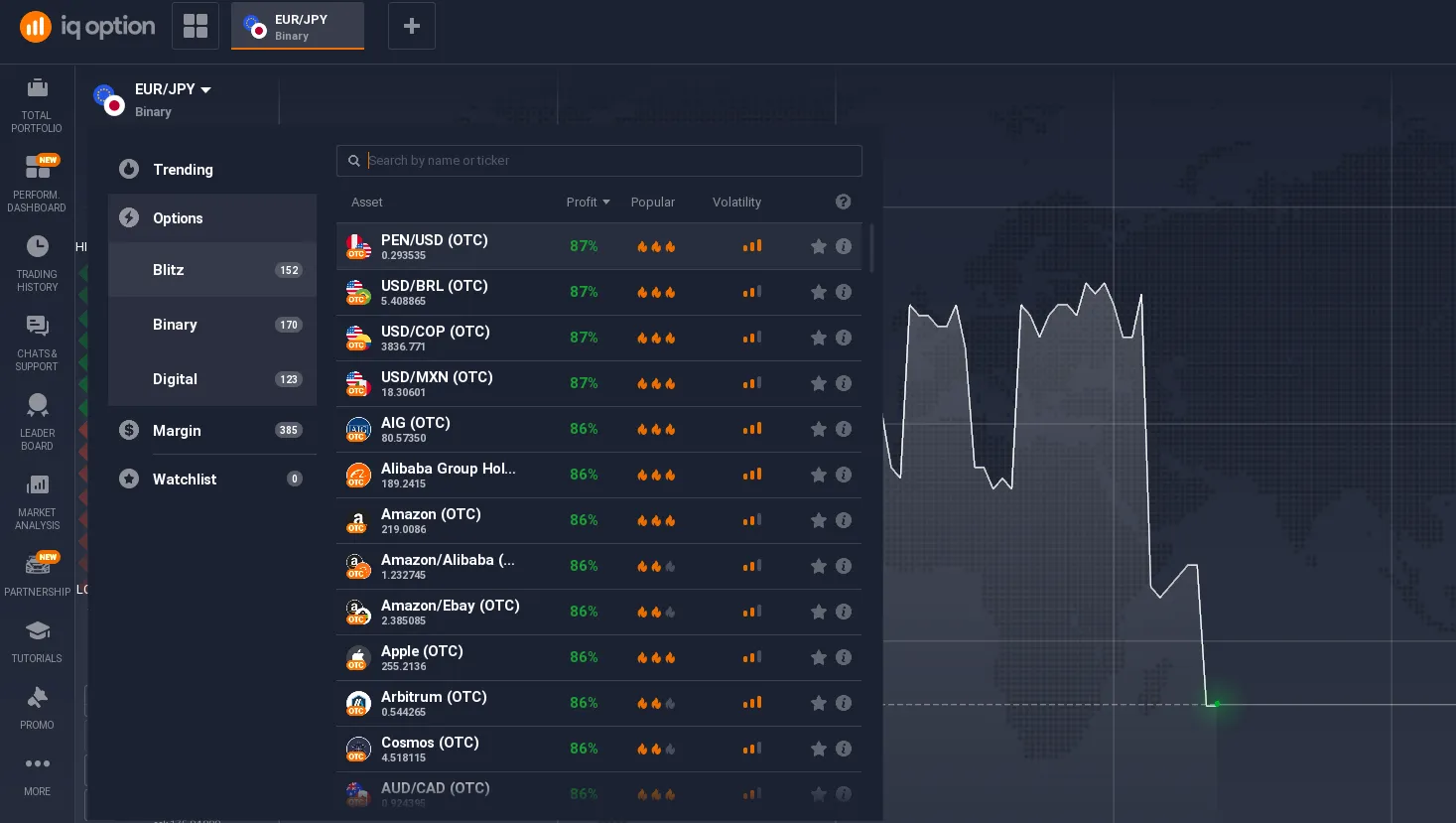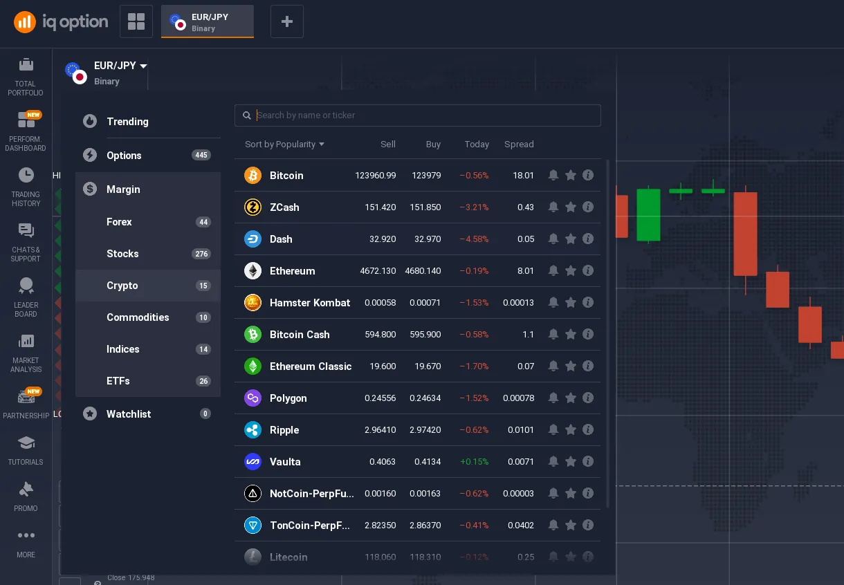IQ Option trading platform launched in 2013, provides online access to a variety of financial instruments: forex, stocks, commodities, cryptocurrencies, ETFs, binary options, alternative assets, and more.