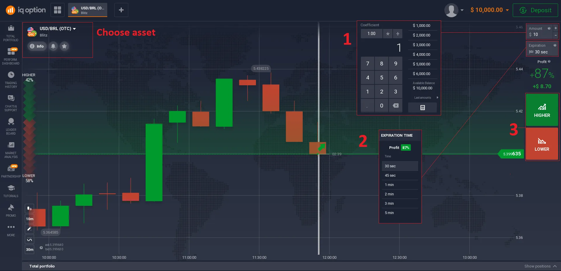 Binary options are slightly different. Let’s say you analyze the USD BRL pair using the economic calendar and notice important news that could move the market. You place a real money binary option predicting that the price will rise in the next 30 seconds. If your prediction is correct, you earn a fixed 87% payout. If not, you lose the invested amount. This simplicity makes binary options attractive but also emphasizes the high risk involved.